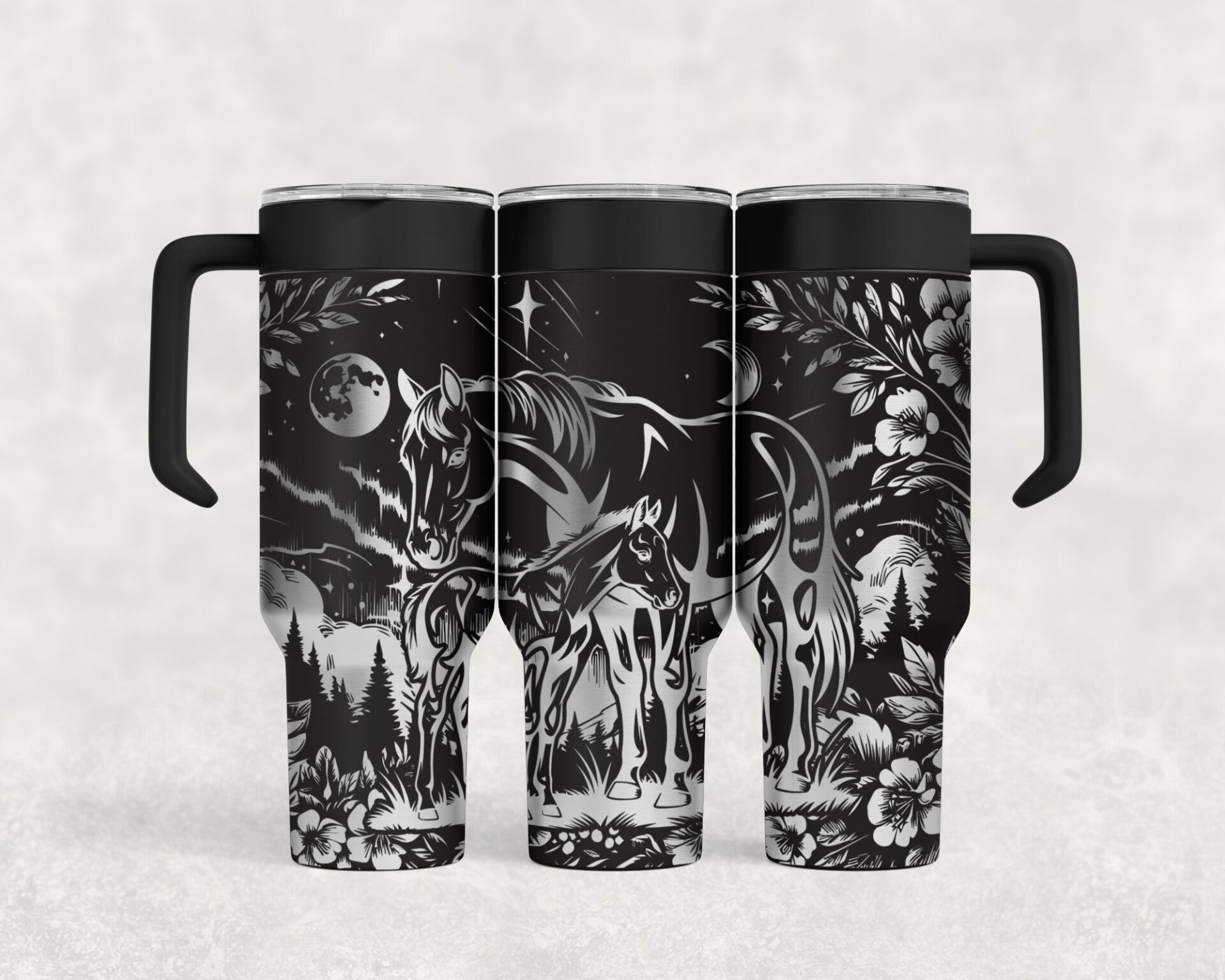 40OZ laser engraved Horses stainless steel tumbler custom